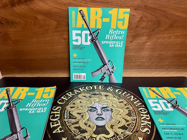 Seeing the guns and ammo magazine in print with your work inside is a milestone. The cover featuring AR 15 retro rifles sets the tone for a publication that blends tradition with modern firearm culture.