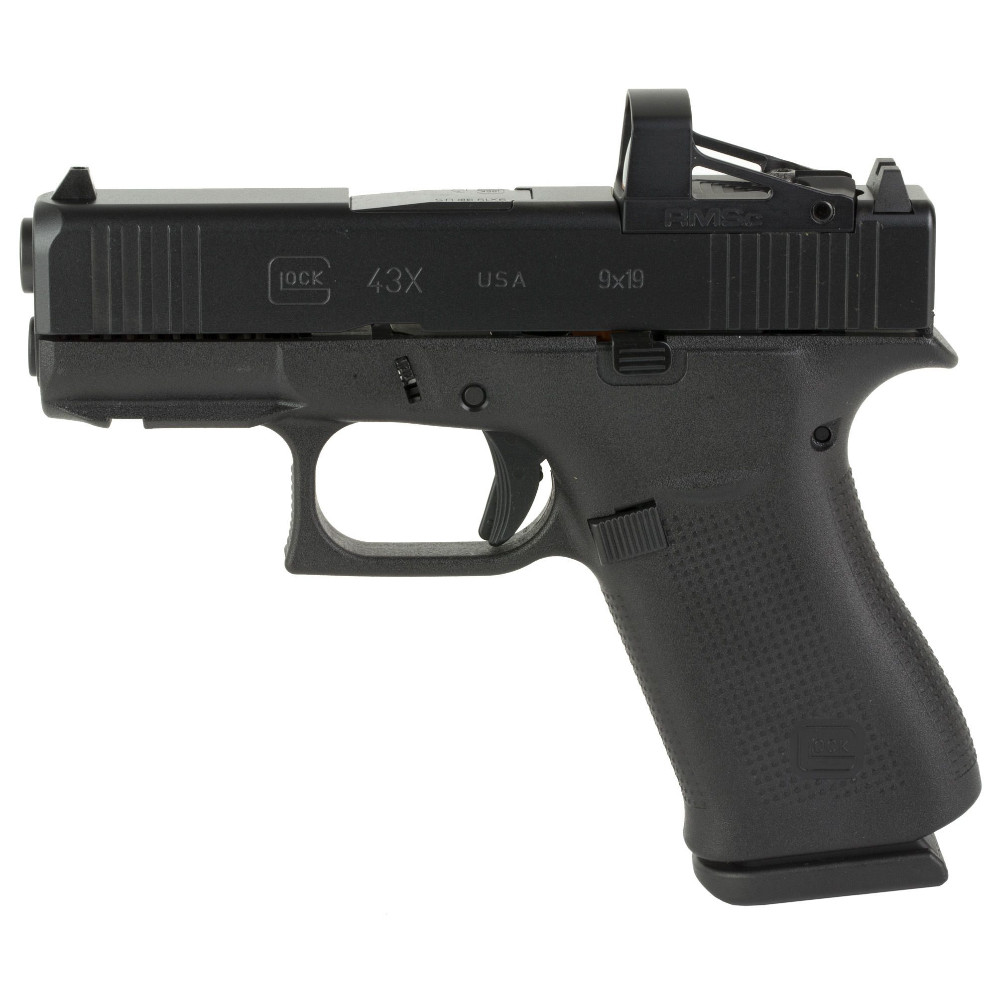 Chambered in 9mm Luger, the G43X features a compact Slimline frame with with an nDLC finish and an included Shield RMSc Red Dot.