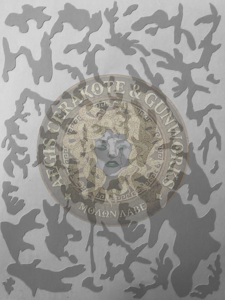 Aegis Cerakote & Gunworks stencils for rifles, pistols, magazines, tumblers, and all your project needs are created with Avery Dennison high heat vinyl material as it is designed for high heat applications such as Cerakote, KG Gun Cote or DuraCoat. Our vinyl can also be used for air dry applications like Krylon, Rust-Oleum and more. Even when heated (over 200F), no sticky residue will be left behind if the surface has been left to cool. Aegis Cerakote and Gunworks stencils are the highest quality, flexible and durable for use on firearms and other projects where you have a need for detailed and crisp lines. Woodland, Multi-Cam and Honeycomb are just a few of our popular stencil patterns but we have also created Puzzled, Fingerprint, Confusion and many more. Have a look around and see what it’s like to work with the best in the business – Aegis Cerakote & Gunworks.