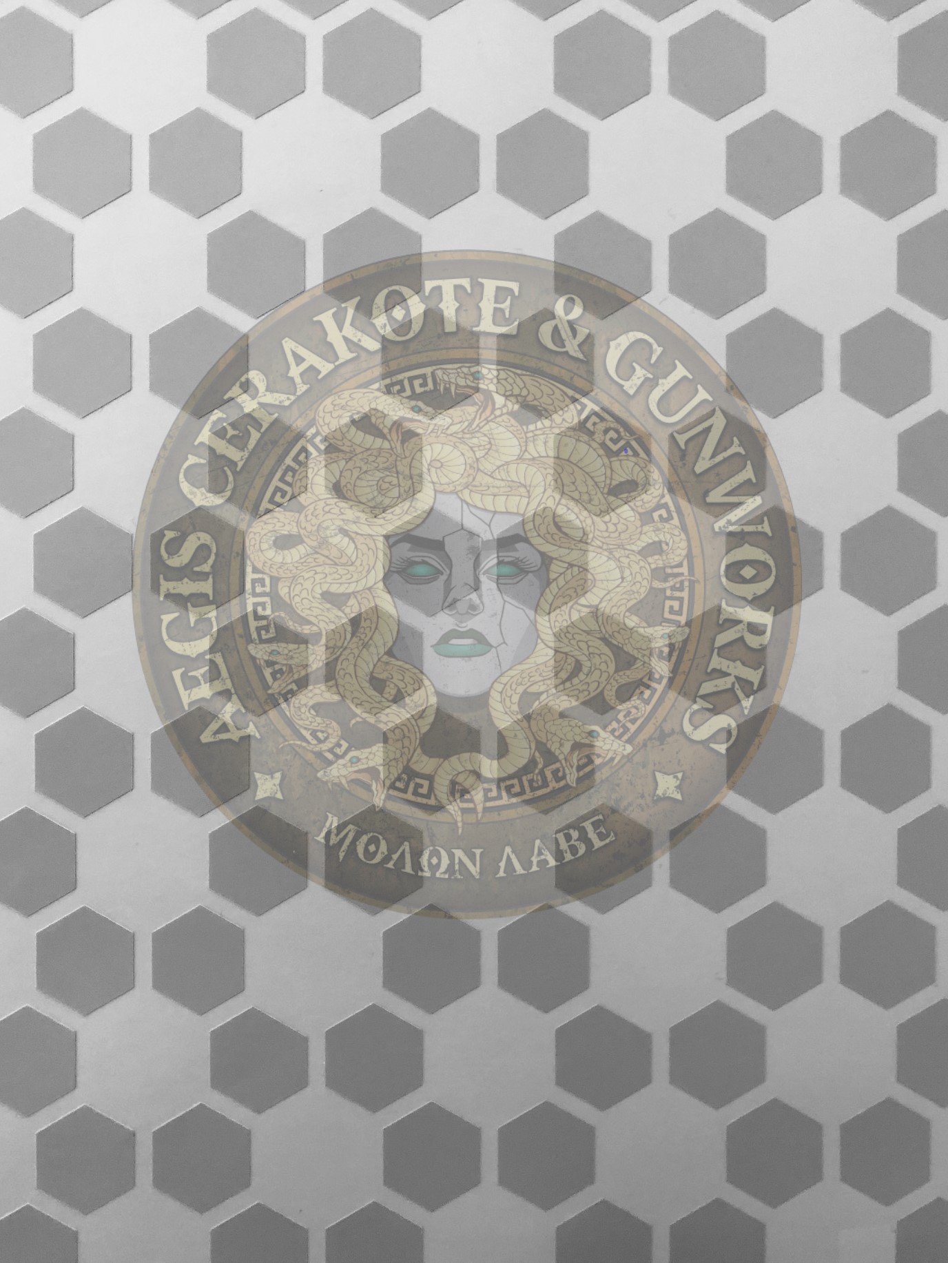 Aegis Cerakote & Gunworks stencils for rifles, pistols, magazines, tumblers, and all your project needs are created with Avery Dennison high heat vinyl material as it is designed for high heat applications such as Cerakote, KG Gun Cote or DuraCoat. Our vinyl can also be used for air dry applications like Krylon, Rust-Oleum and more. Even when heated (over 200F), no sticky residue will be left behind if the surface has been left to cool. Aegis Cerakote and Gunworks stencils are the highest quality, flexible and durable for use on firearms and other projects where you have a need for detailed and crisp lines. Woodland, Multi-Cam and Honeycomb are just a few of our popular stencil patterns but we have also created Puzzled, Fingerprint, Confusion and many more. Have a look around and see what it’s like to work with the best in the business – Aegis Cerakote & Gunworks.
