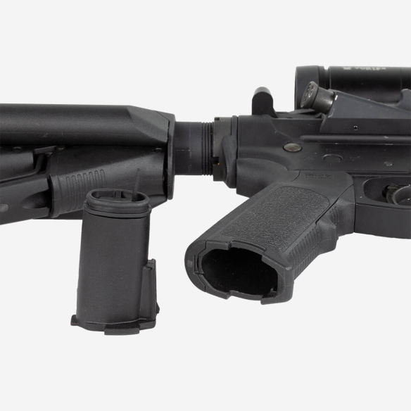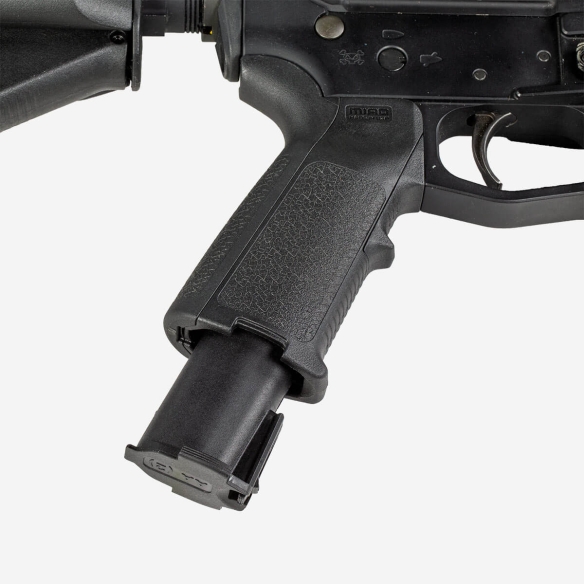 Internal core unit for the MIAD®, MOE®, MOE+®, MOE-K2®, and MOE® AK Grips designed to hold two (2) AA type batteries in a self contained, water-resistant unit. Included internal spacer provides rattle-free storage of either (2) AAA or (2) N size batteries (commonly used for EOTech sights). Rubber cap has two sides with marking to identify “spent” batteries and can be opened with a push of the thumb.