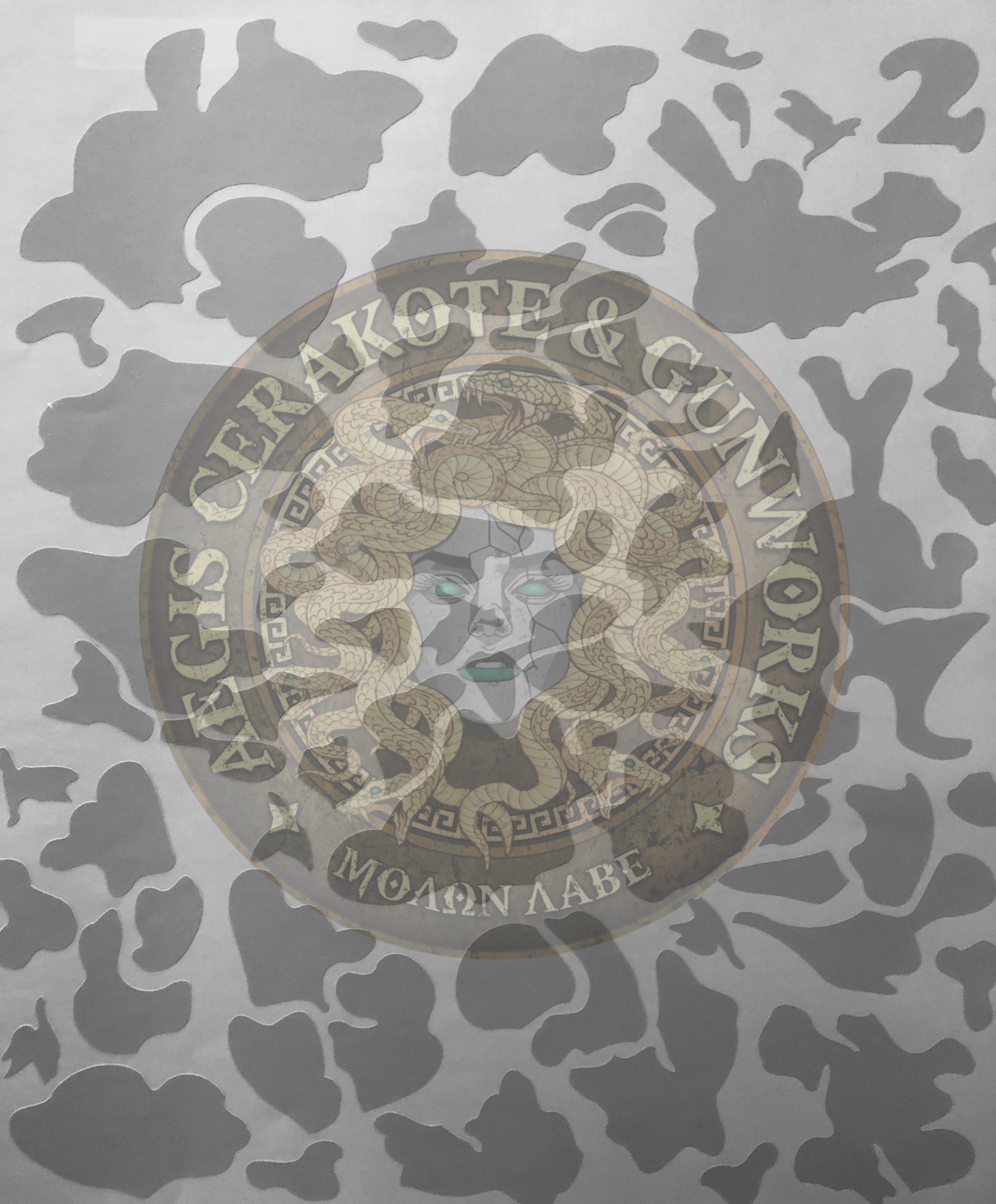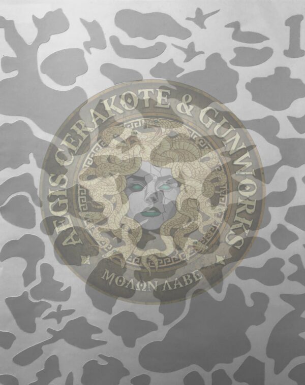 Aegis Cerakote & Gunworks stencils for rifles, pistols, magazines, tumblers, and all your project needs are created with Avery Dennison high heat vinyl material as it is designed for high heat applications such as Cerakote, KG Gun Cote or DuraCoat. Our vinyl can also be used for air dry applications like Krylon, Rust-Oleum and more. Even when heated (over 200F), no sticky residue will be left behind if the surface has been left to cool. Aegis Cerakote and Gunworks stencils are the highest quality, flexible and durable for use on firearms and other projects where you have a need for detailed and crisp lines. Woodland, Multi-Cam and Honeycomb are just a few of our popular stencil patterns but we have also created Puzzled, Fingerprint, Confusion and many more. Have a look around and see what it’s like to work with the best in the business – Aegis Cerakote & Gunworks