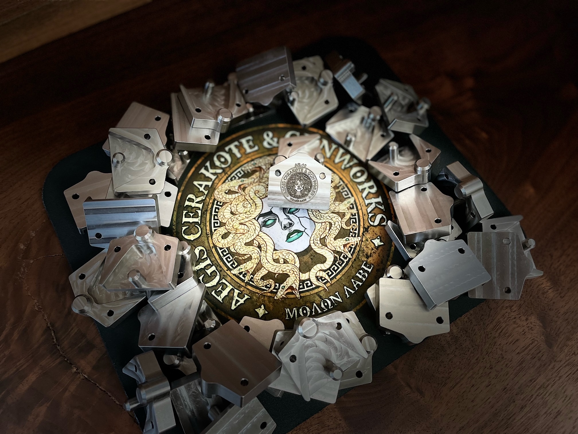 CNC machined from a solid block of steel; this AR-10 jig allows Class 2 manufactures to easily place the auto sear hole on both sides of your lower receiver. By utilizing the lower receiver’s safety bore and takedown hole, there is no longer a need to level, adjust, measure, etc. anything. The best part is that one jig can be used for drilling both sides. The standard AR-15 auto sear is too small to be tripped by the AR-10 .308 full auto bolt carrier. Aegis Cerakote & Gunworks has designed and engineered an AR-10 auto sear which must be used in conjunction with a full auto parts kit. Each individual rifle will need to be timed correctly with the proper buffer spring and weight to cycle correctly.