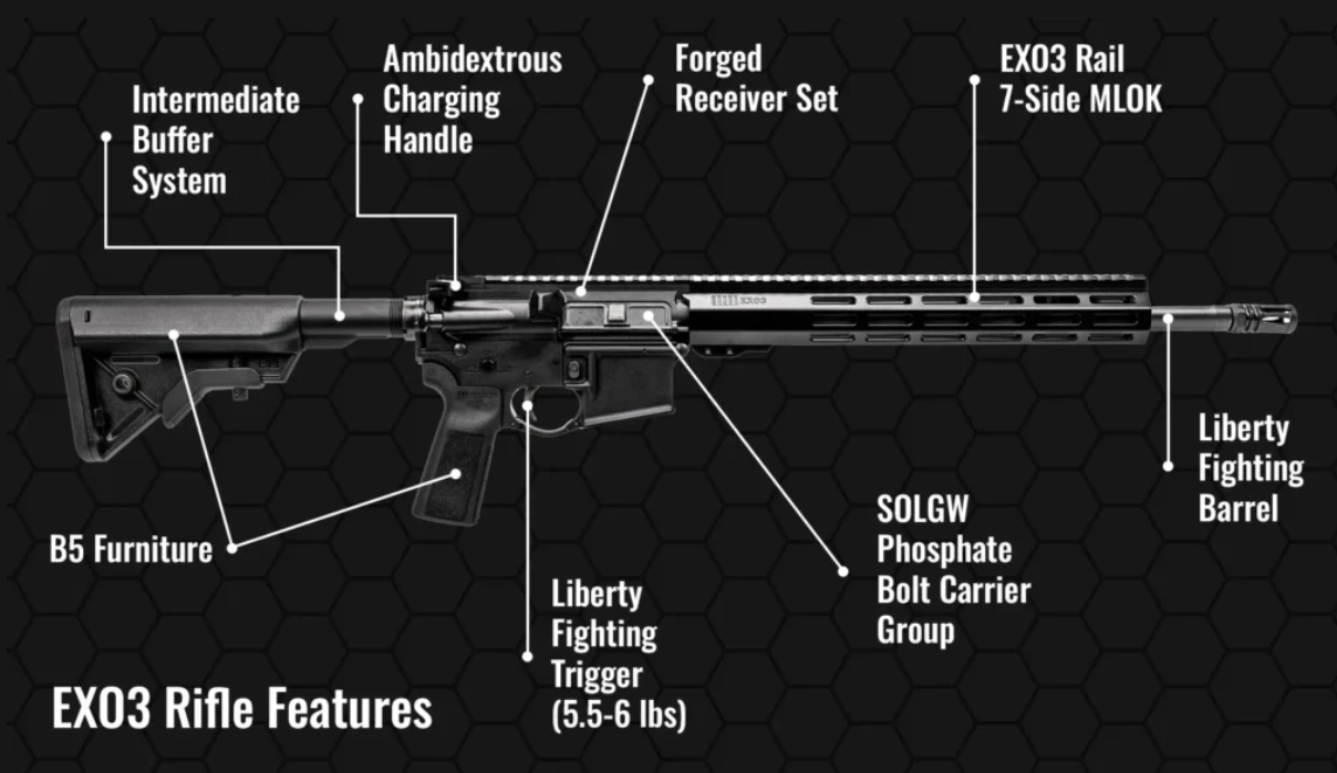 - EXO3 Rifles feature SOLGW Liberty Fighting Barrels