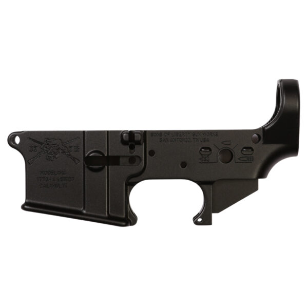 The SOLGW ANGRY PATRIOT M4 stripped lower receivers are made to the tightest tolerances while still being compatible with Mil-Spec parts and upper receivers. M16 pocket cut with a low rear shelf and forged from 7075-T6 aluminum increasing strength and resistance from cracking. After the forging process is complete, the ANGRY PATRIOT lower receivers are fully machined to eliminate flash marks and tighten up the tolerances to better than Mil-Spec. Every AR-15 lower receiver has a black Type II hardcoat anodized finish to provide durability and corrosion resistance. The 1776 ANGRY PATRIOT roll mark and pictogram selector markings make this lower receiver one of a kind for your special build!