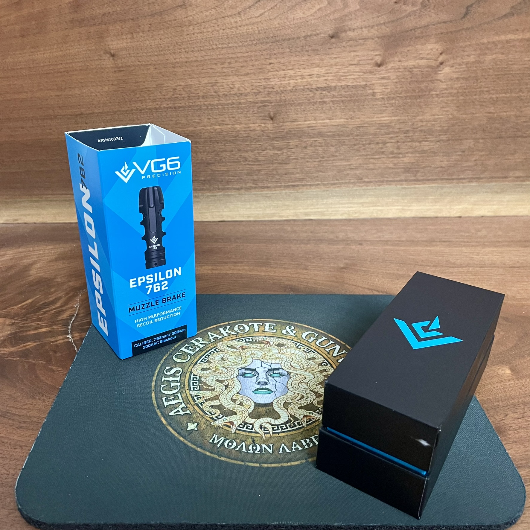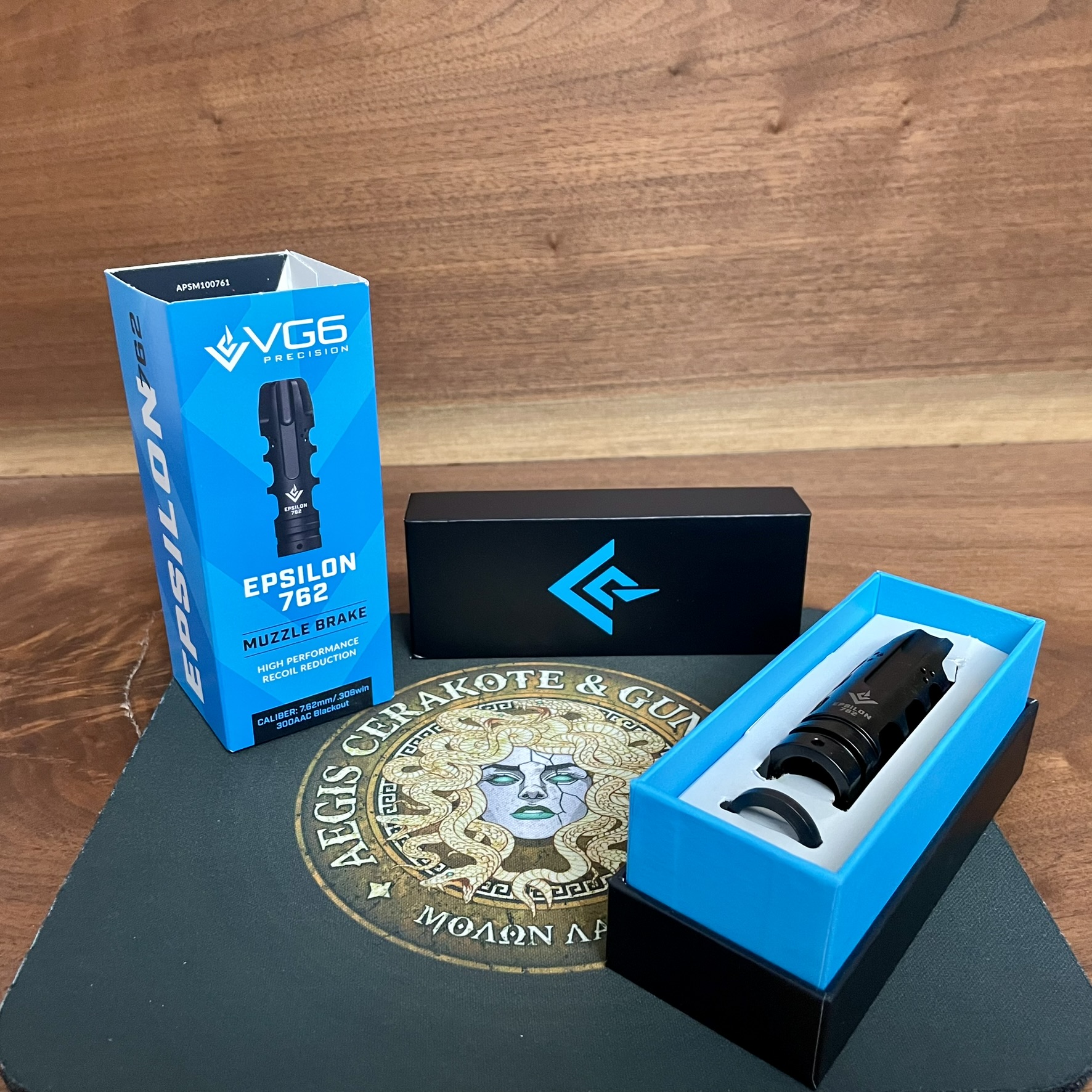 Compatible with most common .30 caliber chambered rifles, this hybrid device features both recoil compensation and flash signature mitigation in one package. With a continued focus on improved recoil control, the EPSILON 762 features a new enhanced chamber design that improves gas flow and felt recoil measurably over previous versions. VG6 Precision has focused on saving weight through both the chamber design and aggressively cut channels along the length of the device.